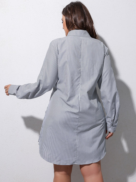 Elengatine Plus Stripe Light Blue Dress Fashion