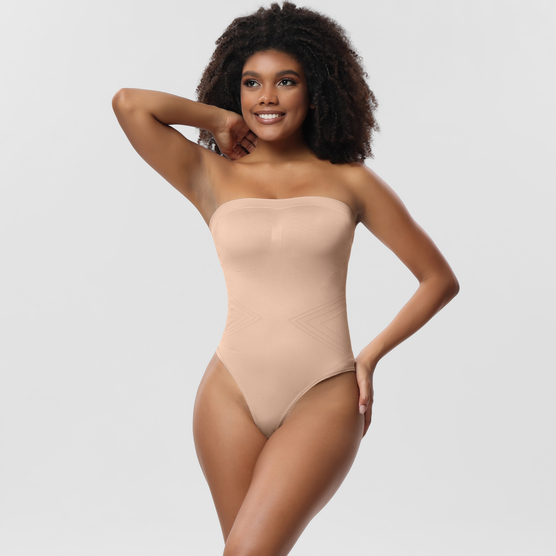 Elengatine Plain Detachable Shoulder Strap Bodysuit Shapewear