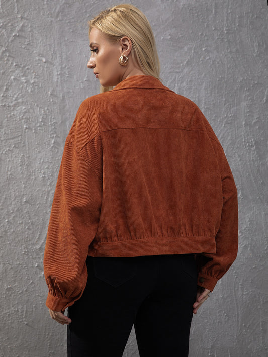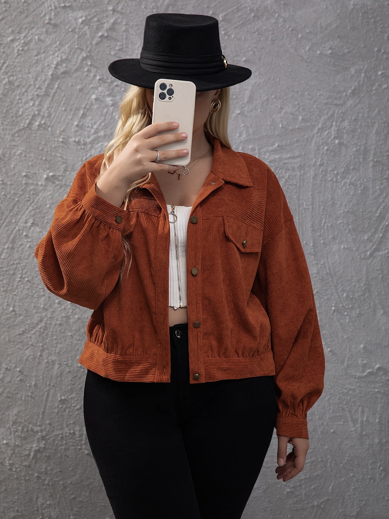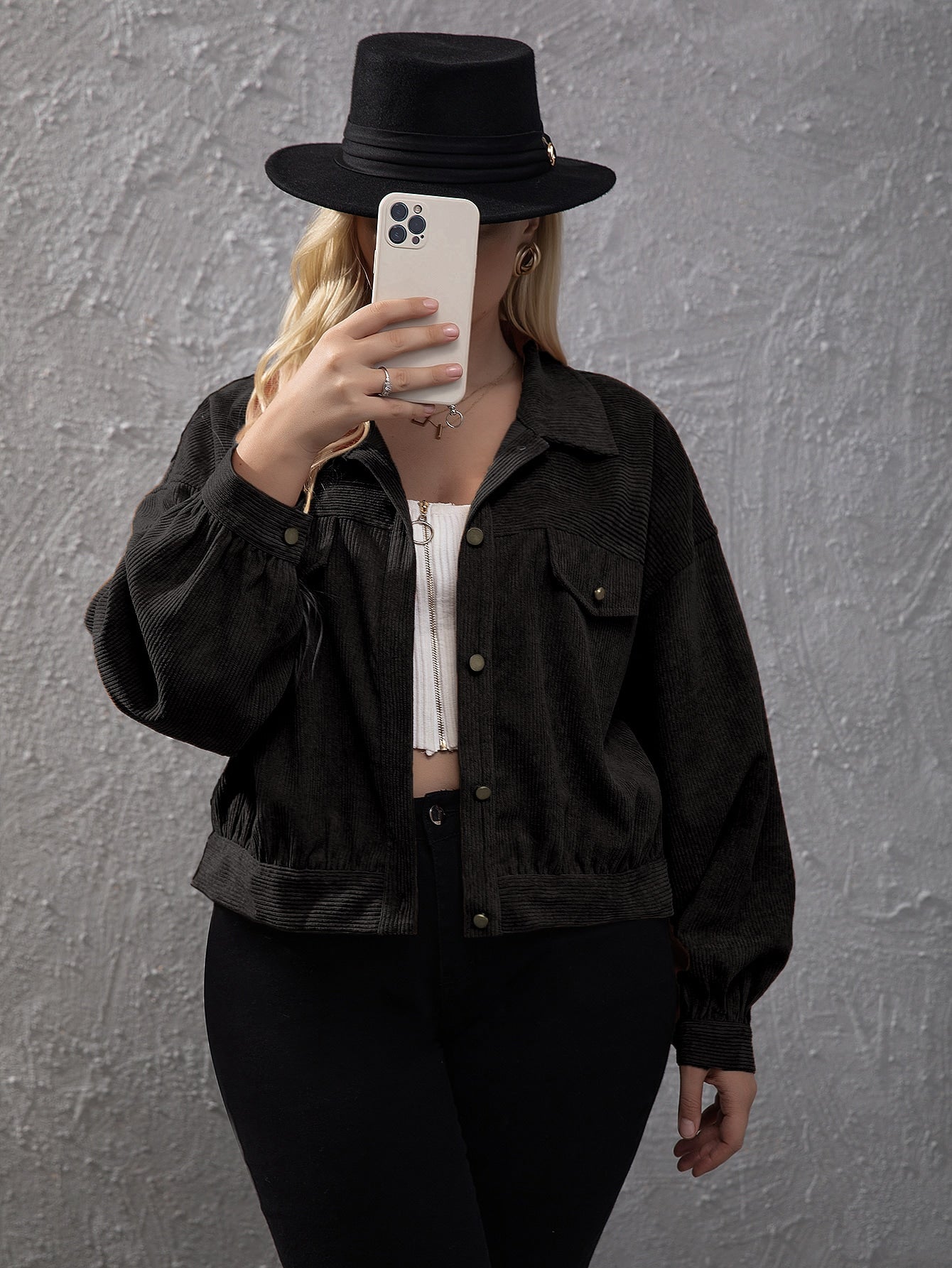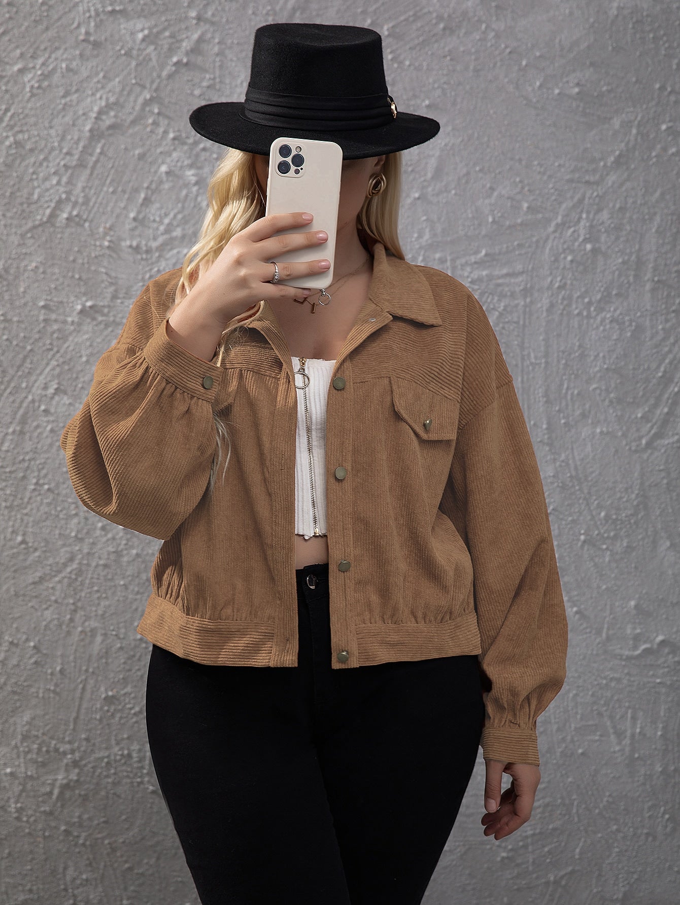 Elengatine Plus Drop Shoulder Flap Detail Corduroy Jacket
