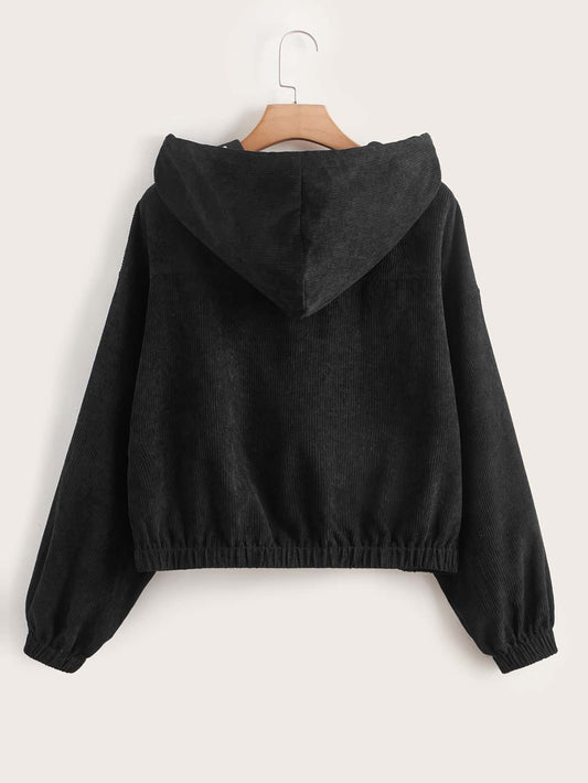 Elengatine Plus Causal Drop Shoulder Zip Up Hooded Corduroy Jacket