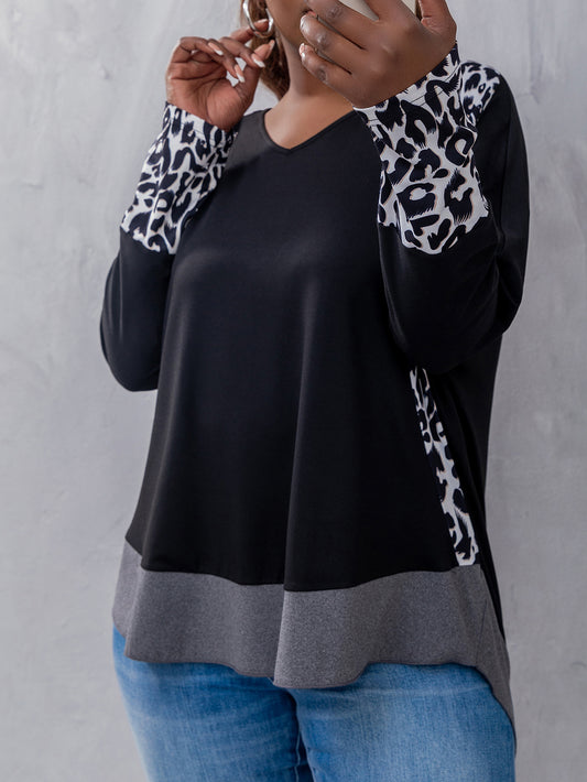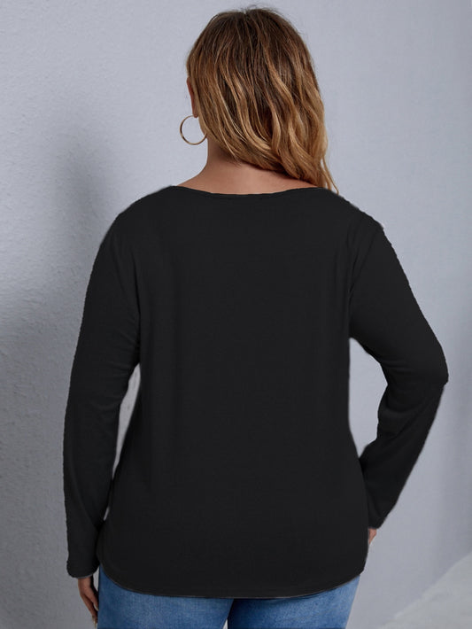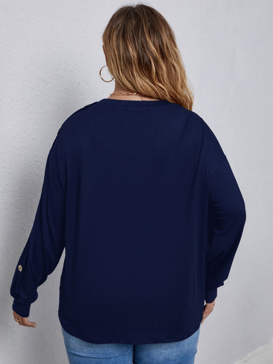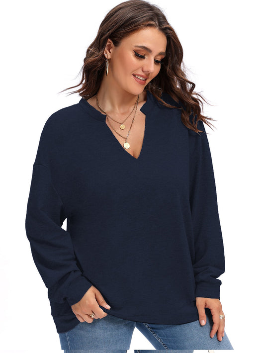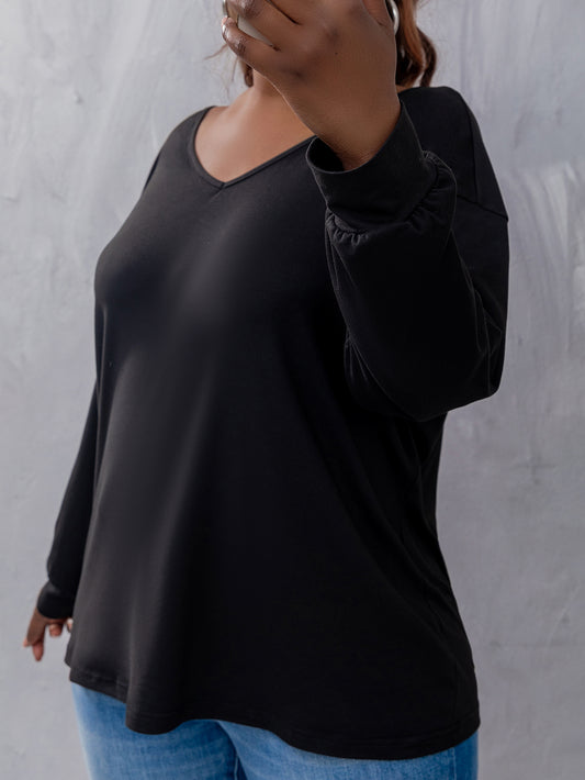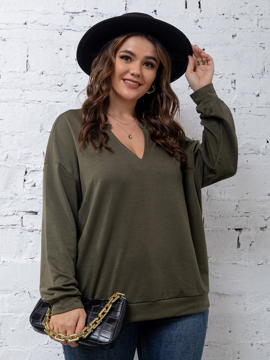 Elengatine Plus Solid V Neck Drop Shoulder Top