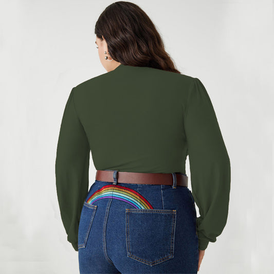 Elengatine Plus Size Long-sleeved Green Top V-neck Fashion