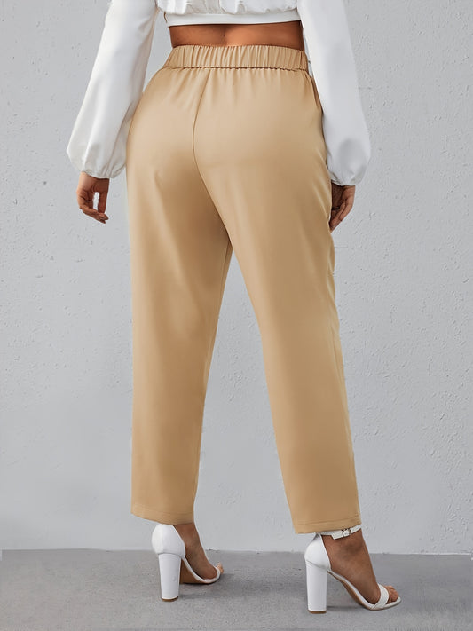 Elengatine Plus Size Solid Color Split Hem Top & Ladder Cutout Pants Set