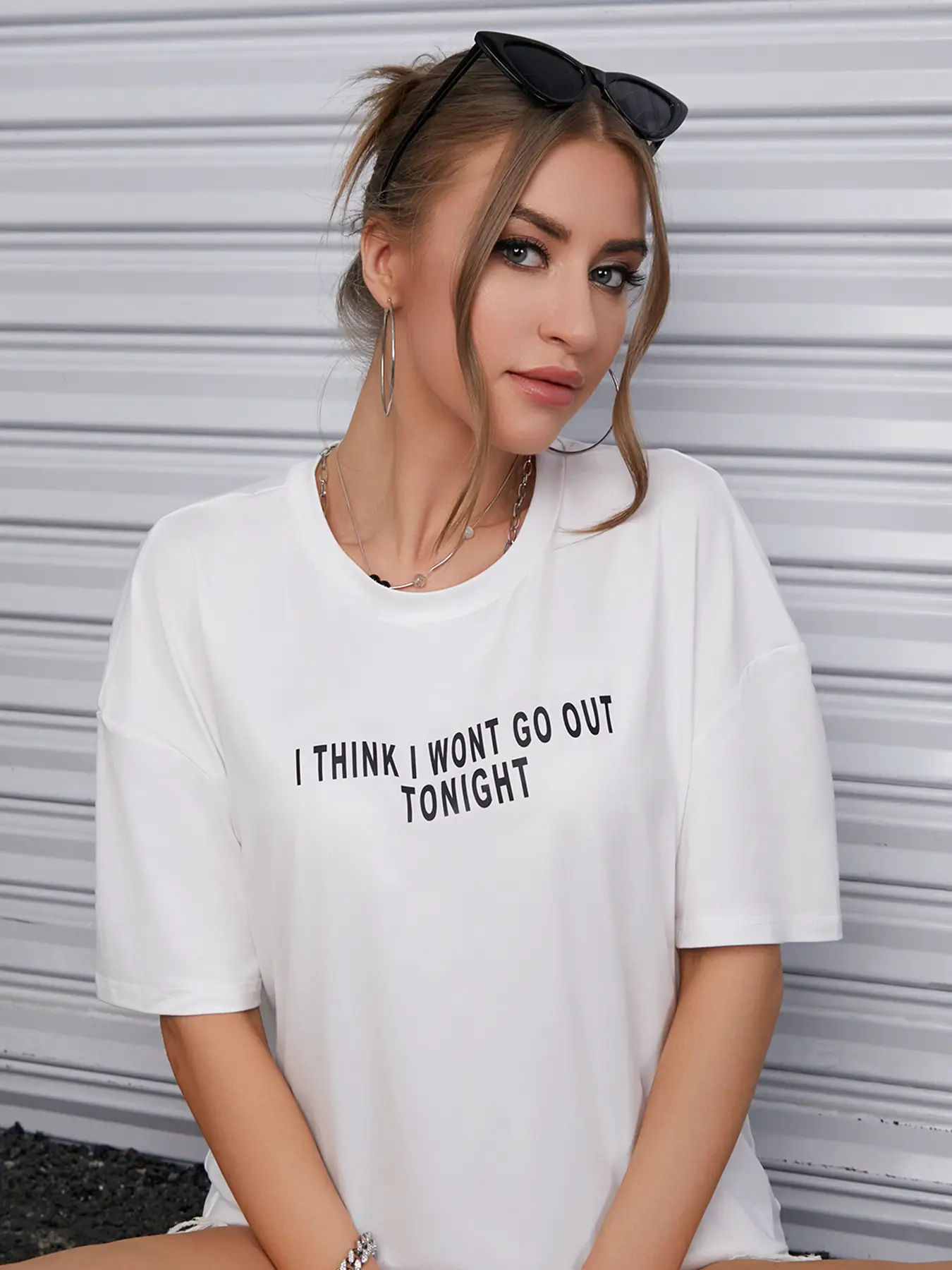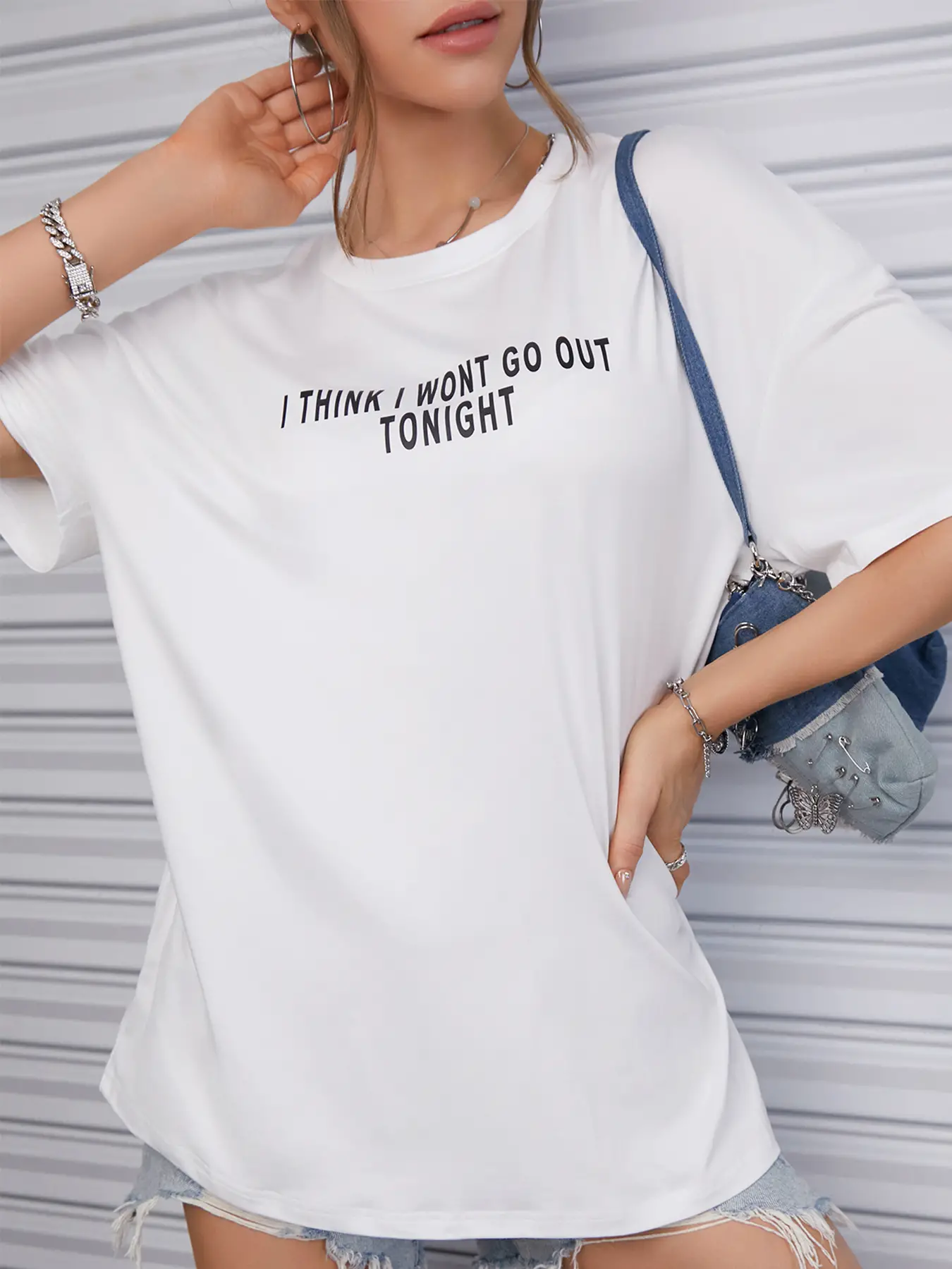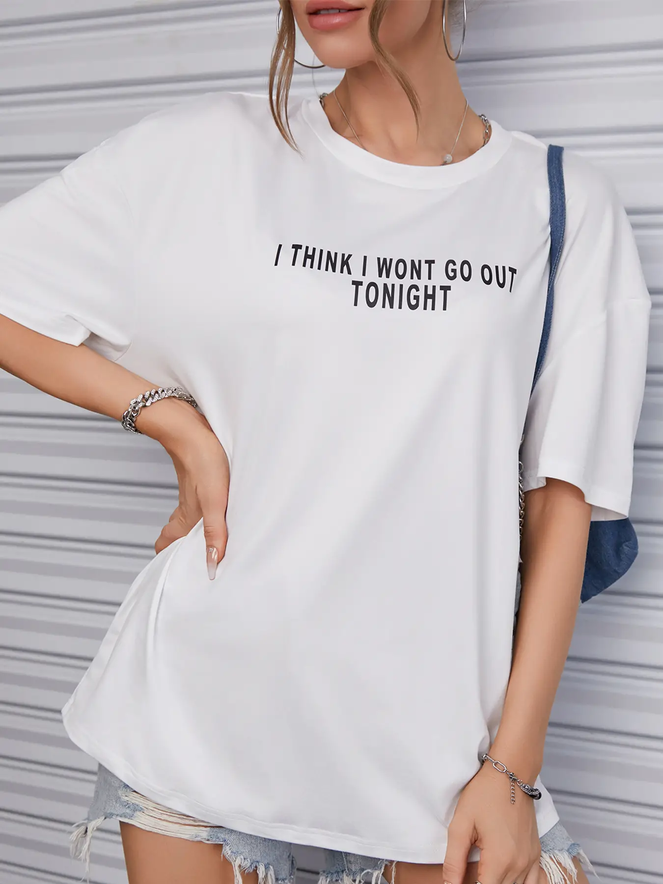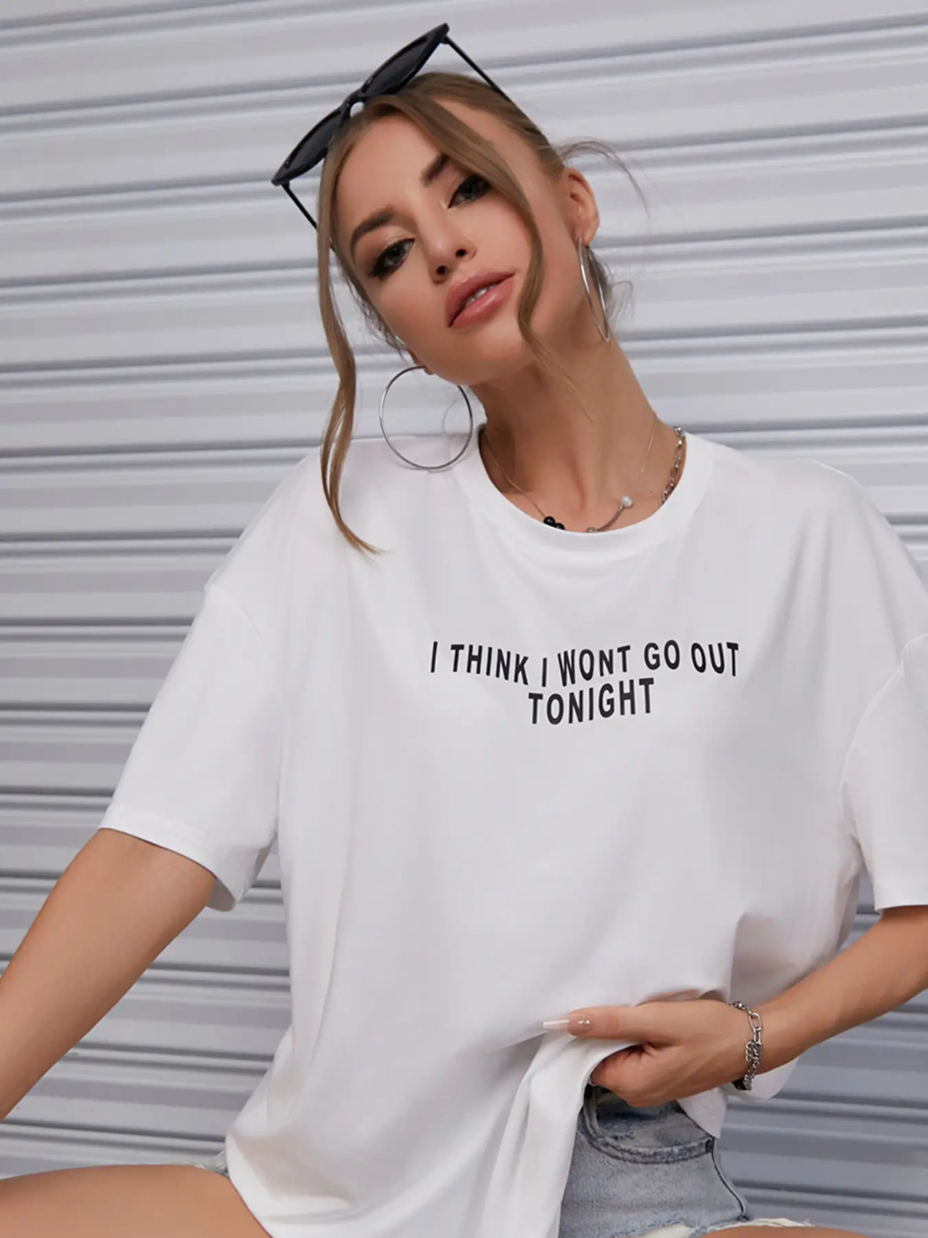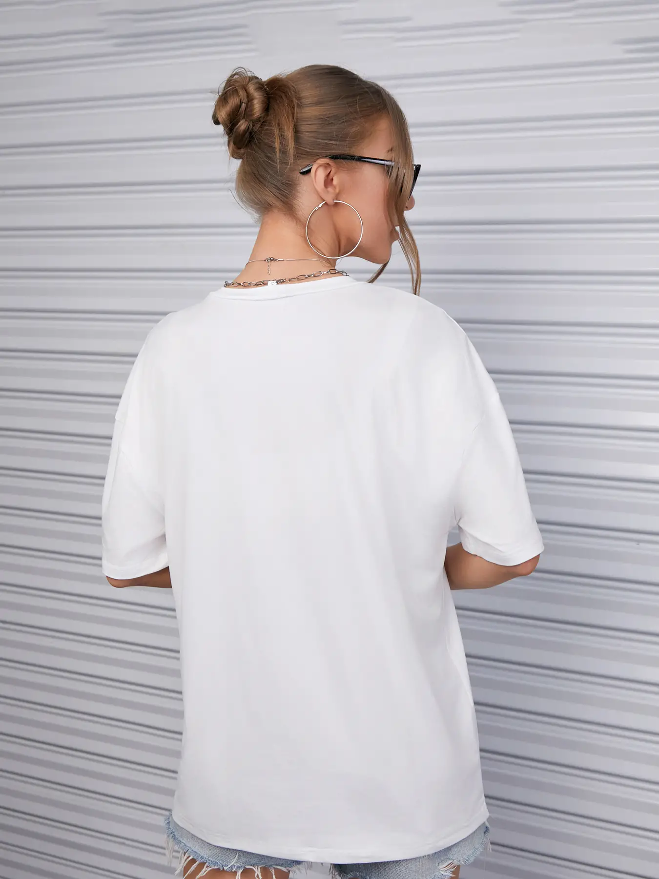 Elengatine White Letter Graphic Drop Shoulder Tee Casual